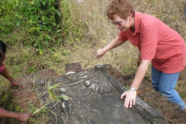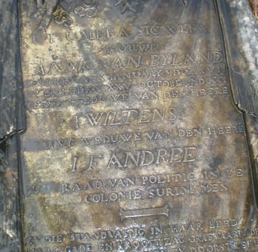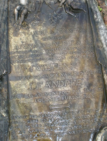 We have been to Suriname twice because of the work of René. During that time, I looked around the New Orange Garden cemetery in Paramaribo, where I found the grave of Anna van Bijlandt: our matriarch!