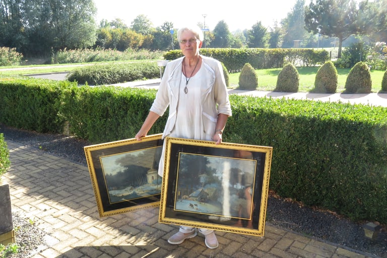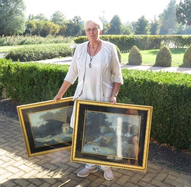 The €100 each that I had paid for them didn't bother her, and she happily went home with her two paintings!